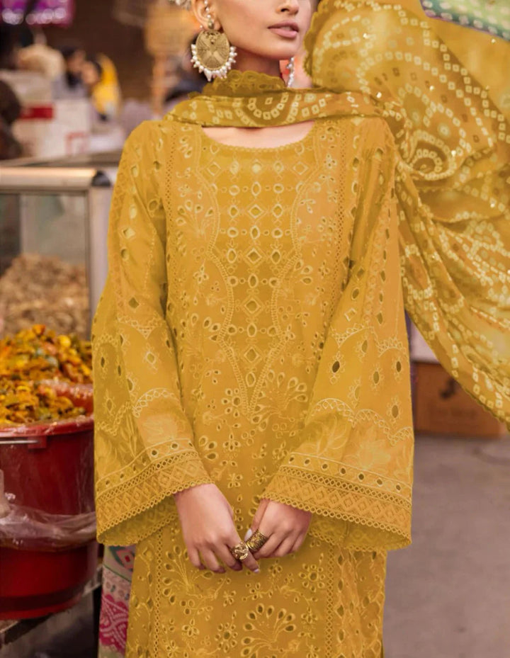 Grace S1124-Embroidered 3pc CHIKANKARI Lawn dress with Printed Munar Dupatta.