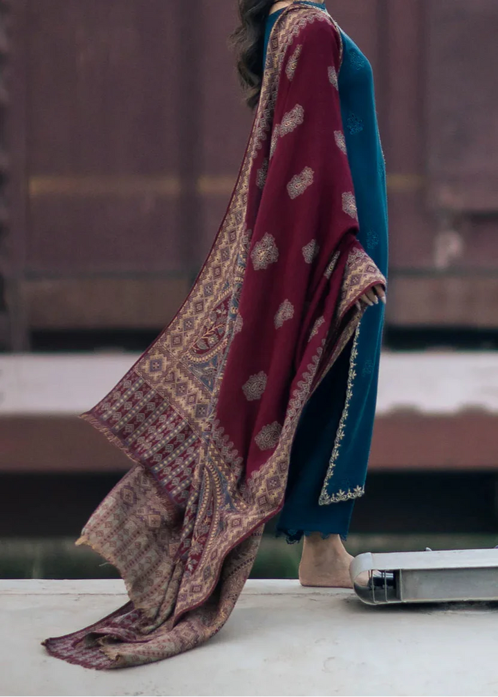 Grace W716-Embroidered CHIKANKARI 3pc Marina Dress With Printed Shawl