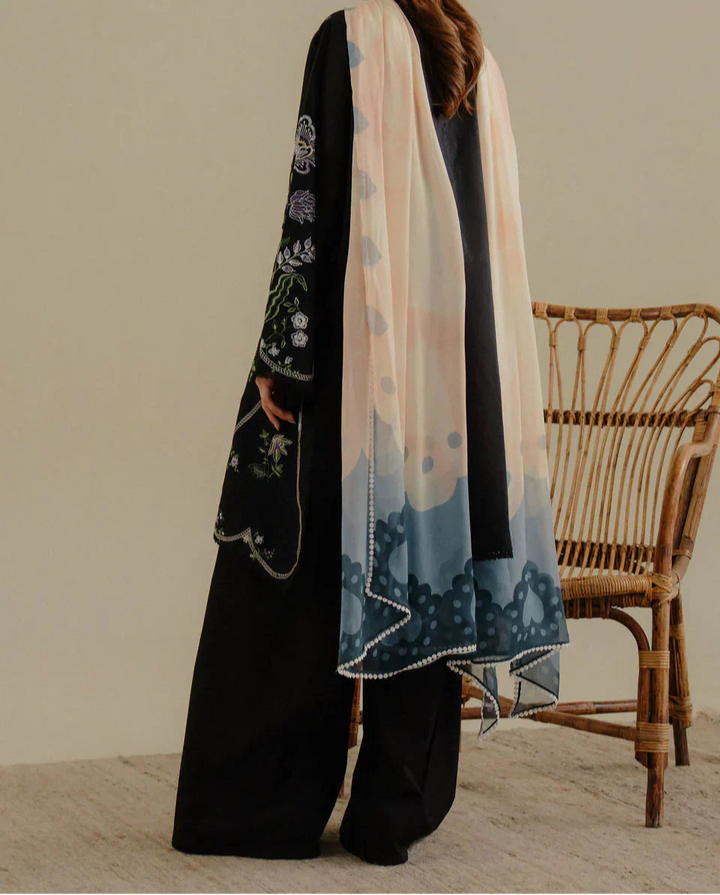 Grace W744-Embroidered 3pc Marina Dress With Printed Shawl.