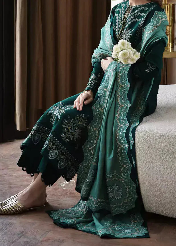 Grace Z-(W771 ) - Stitched Embroidered 3pc Marina Dress With Printed Shawl.