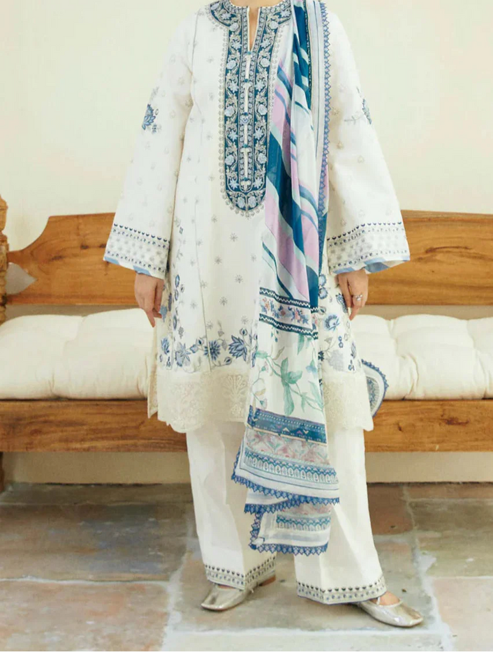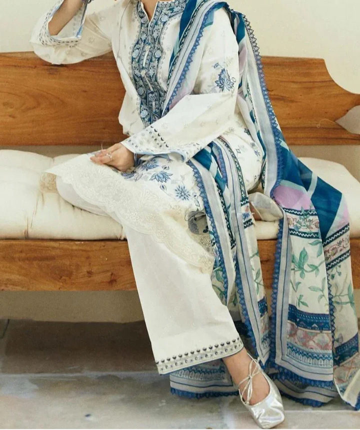 Grace Z-(1265) - Stitched Embroidered 3pc Lawn Dress With Printed Munar Dupatta.