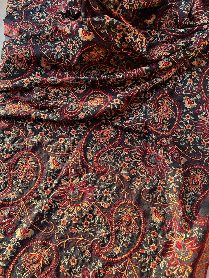 Sarinnah D13 Black - Formal heavy Embroidered Karandi Shawl